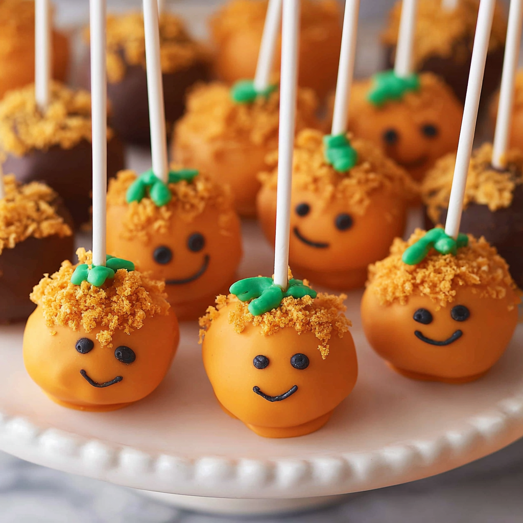 Pumpkin Cake Pops are bite-sized treats made from pumpkin spice cake, frosted, and coated in chocolate. They are perfect for fall gatherings!